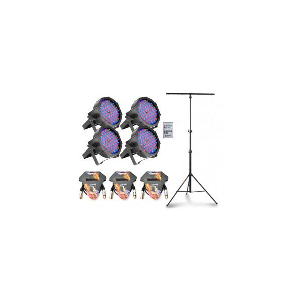 Set de 4 FlatPar-uri LED RGB CAMEO 10mm cu telecomanda IR, stativ lumini si 3 cabluri XLR-XLR 1m eXpertCable.