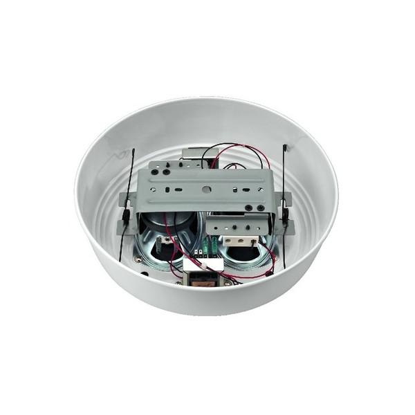 Difuzor Tavan Monacor EDL-36C/WS, echipat cu 2 difuzoare separate, full-range, fiecare cu transformator propriu , carcasă metalică robustă și grilaj metalic cu suport de prindere.