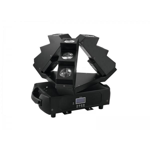 Moving-Head in forma piramidala cu miscare PAN nelimitata.