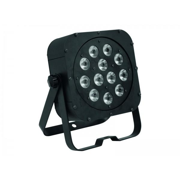 EUROLITE LED SLS-12 QCL 12x5W Floor, echipat cu procesoare quad-color LED 4in1 pentru amestec omogen de culoare în culorile roșu, albastru, verde, alb, funcții:culori statice RGBW, programe interne, dimmer, stroboscop, controlul sunetului, sensibilitate a microfonului. Control prin DMX 512, afisare ON/OFF, sound-control prin intermediul microfonului incorporat.