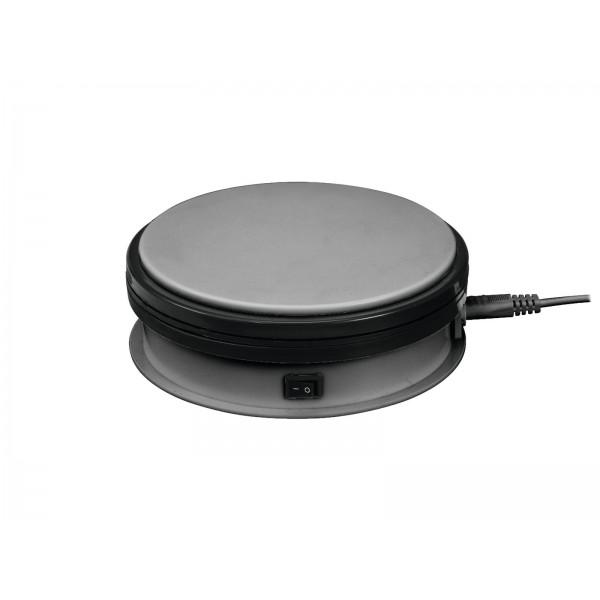 Platou rotativ cu diametrul de 15cm, ce suporta o greutate de 5kg. Este ideal pentru expunerea produselor in magazine, targuri, etc. Buton on/off.