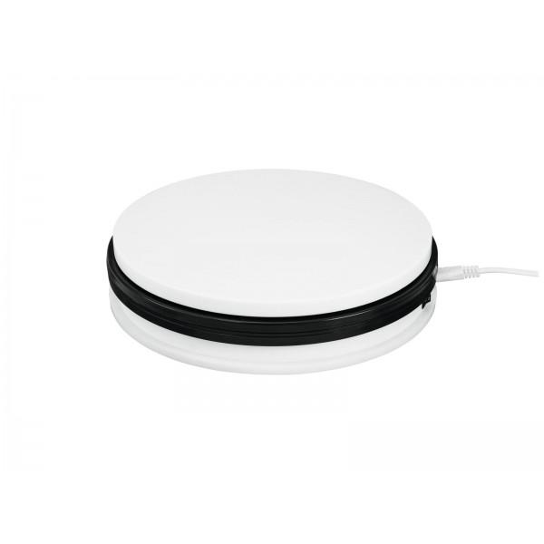 Platou rotativ cu diametrul de 45cm, ce suporta o greutate de 50kg. Este ideal pentru expunerea produselor in magazine, targuri, etc. Buton on/off.
