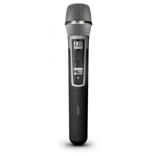 LD U508 HHC2, sistem dual de receptor wireless cu 2 transmițătoare portabila, capsulă dinamica interschimbabila, cardioidă, 96 de canale în 8 grupe a cate 12 canale, gama de frecvență audio: 60-16.000 Hz, putere comutabil (2mW , 10 mW, 30 mW), frequencyscan cu infrarosu, display OLED, alimentat de 2 baterii AA sau acumulatori, gama de frecvențe 823-832 MHz și 863-865 MHz, XLR și jack de ieșire , alimentat de la 13 V DC 1000mA , conectori BNC de antenă, inclusiv. baterii 4x AA, antene.