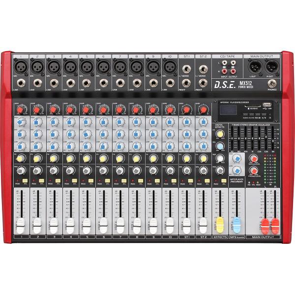 MX512, este un mixer amplificat cu 12 canale, procesor de efecte, modul mp3 ce permite posibilitatea redarii/inregistrarii directa de pe USB/SD card. Putere 2*400W (4 ohmi)