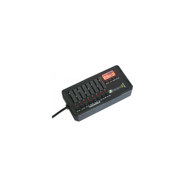 Acest mini controler DMX este un model compact de unitate de control al luminii, special conceputa pentru a putea fi utilizata oriunde. Deoarece este usor de transportat, si de dimensiuni mici, aceasta este adesea folosit "pe drum". Bateria incorporata reincarcabila de 9V asigura ± 6-8 ore de functionare a controlerului rationala. Este potrivit pentru utilizarea in interior cat si in aer liber.