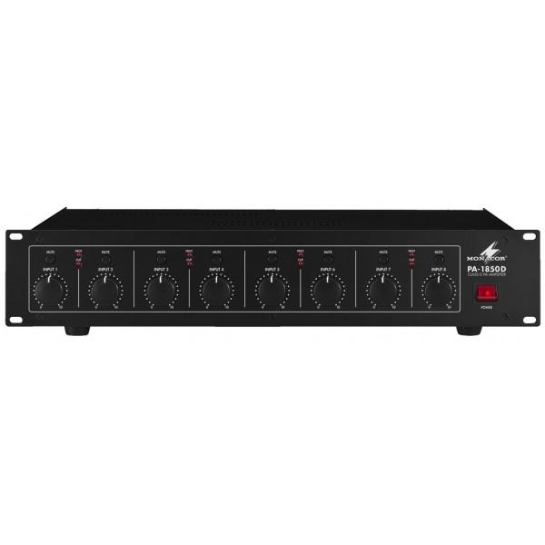 Modul pentru panouri electrice de 19". - modul de 19" (3U) pentru panouri electrice. - modulul contine 4 conectori de panou de 16A CEE de 3 pini cu conexiuni interne. - dimensiuni: 483 x 132 mm (19", 3 Monacor PA-1850D - Amplificator 100V
