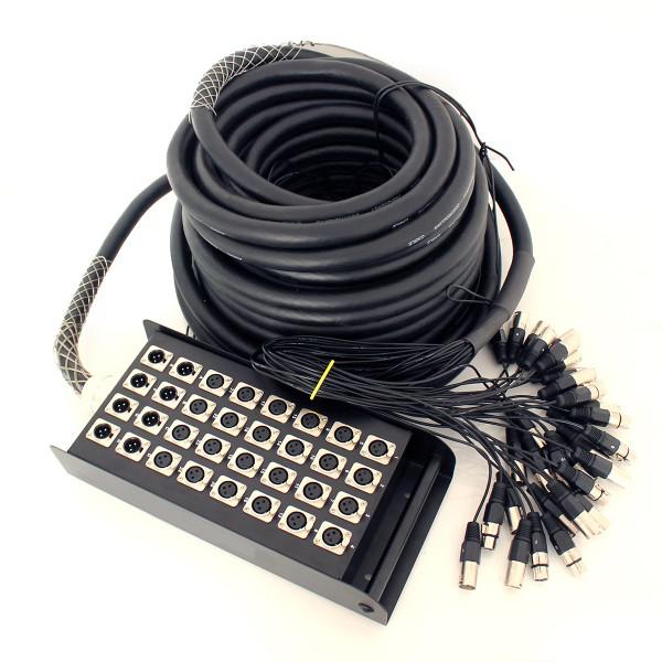 eXpertCable SBA136, cablu multicore cu lungimea de 30m, cu 32 de canale (24 IN / 8 OUT). Carcasa metalica, husa de protectie. Cablu numerotat individual cu cifre imprimate pe manson si marcaje suplimentare pe conectori XLR.