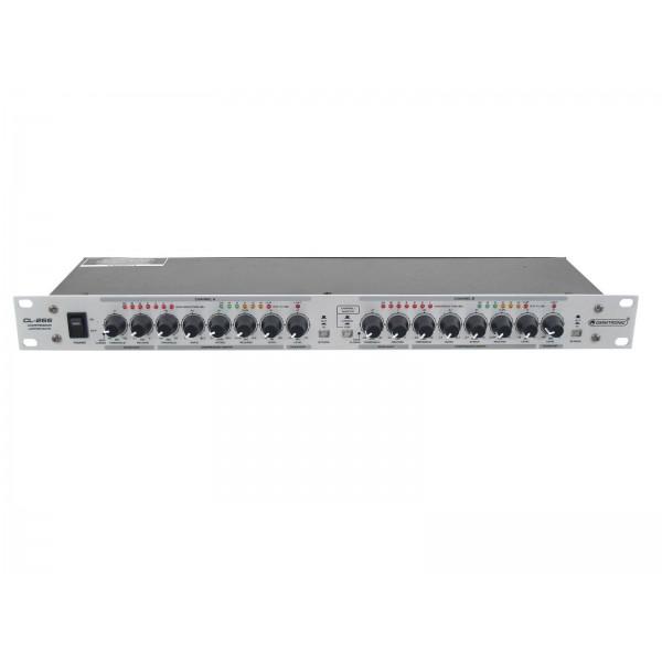 OMNITRONIC CL-266 Compressor/limiter, procesor dedicat cu 2 canale dinamic, comutatorul de by-pass permite compararea instantanee a sunetului original cu sunetul prelucrat, Intrări și ieșiri prin conectori XLR echilibrat și 6,3 mm jack, Instalarea Rack, 1 U.