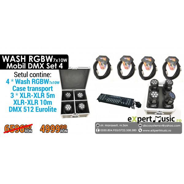 Set 4 WASH RBGW 7x10W Mobil DMX
