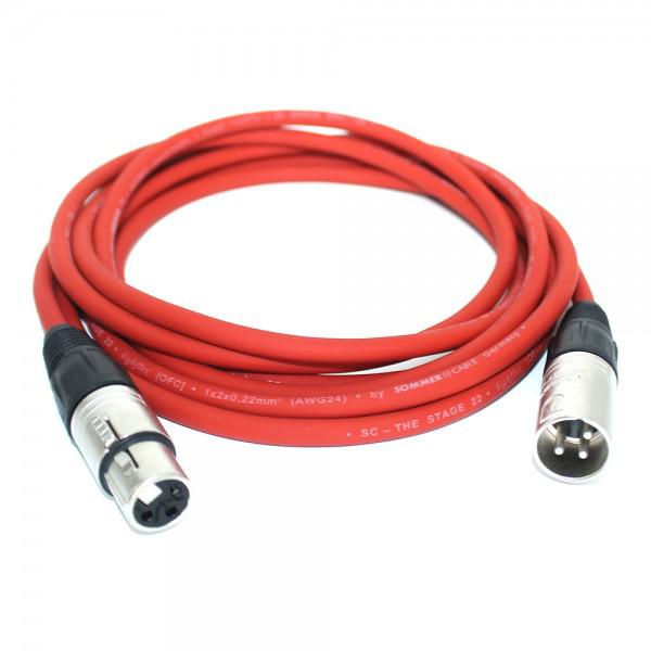 Cablu XLR-XLR Sommer Cable RED OFC Stage Highflex 2 x 0,22 mm²; PVC Ø 6,40 mm; echipat cu mufe NEUTRIK (NC3MX - NC3FX), cu lungimea de 5m.