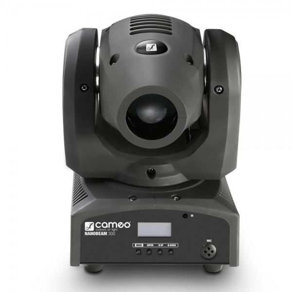 Mini moving-head Cameo NanoBeam 300 cu spectru RGBW ce oferă o lumină foarte clară și puternică, dată de LED-ul Cree 4-în-1 de 30W. Are pan nelimitat și înclinare de 230°, și o rază de lumină de 4°. La comanda