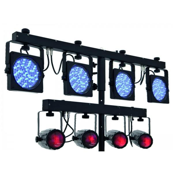 Detalii produs:KLS-200 lightset Compact:DMX LED lumina reflectoarelor cu 4 lămpi108 x 10 mm cu LED-uri pe fiecare (36 rosu, 36 verde, 36 albastru)