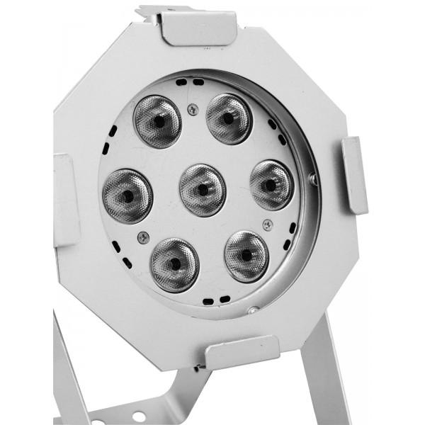Eurolite LED ML-30 QCL 7x8W argintiu, echipat cu 7 led-uri de 8W, posibilitate de a controla prin DMX, usor de montat, sound-control prin intermediul microfonului incorporat, master/slave, RGBW, programe interne, dimmer si functiile stroboscopice ale dmx-ului.
