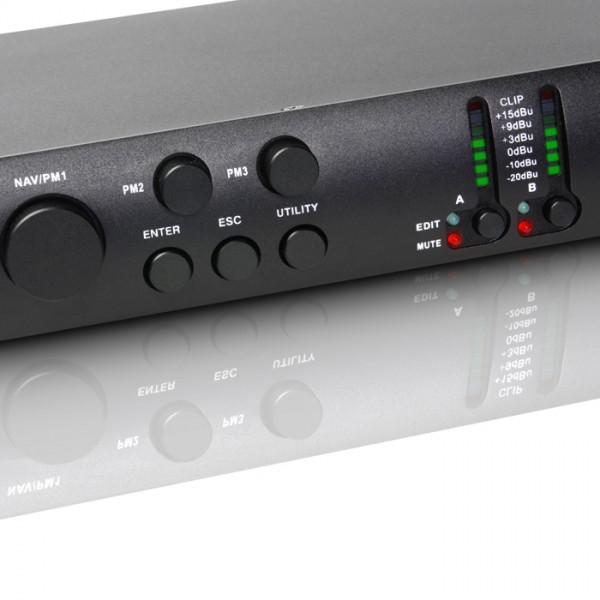 | Display: | multifunction LC display, 6 x output mute LED, 6 x output clip, 2 x input edit LED, 2 x input mute LED, 6 x output limit, 6 x 5-segment output level display, 6 x output edit LED, 2 x input clip, 2 x 6-segment input level display |
