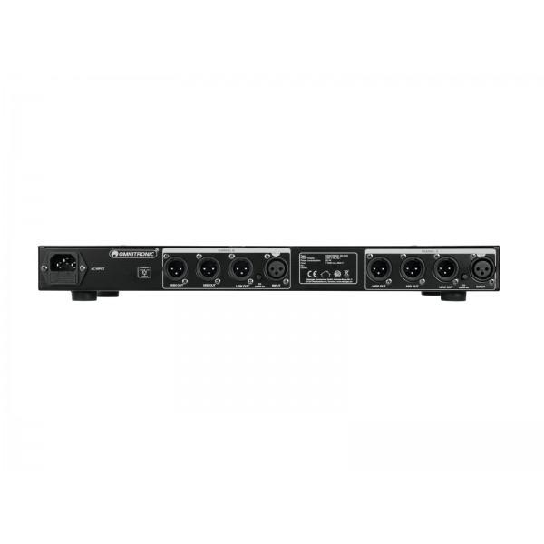 Omnitronic XO-300, este un crossover activ pe 3 cai. Conexiuni prin mufe XLR. Instalare rack 1U.