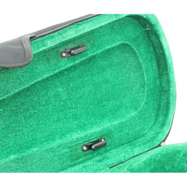 Orlando CV011, este o cutie de vioara 4/4 cu, compartiment pentru accesorii, acoperita cu material impermeabil, rezistenta la lovituri, cu interior din plus de culoare verde.