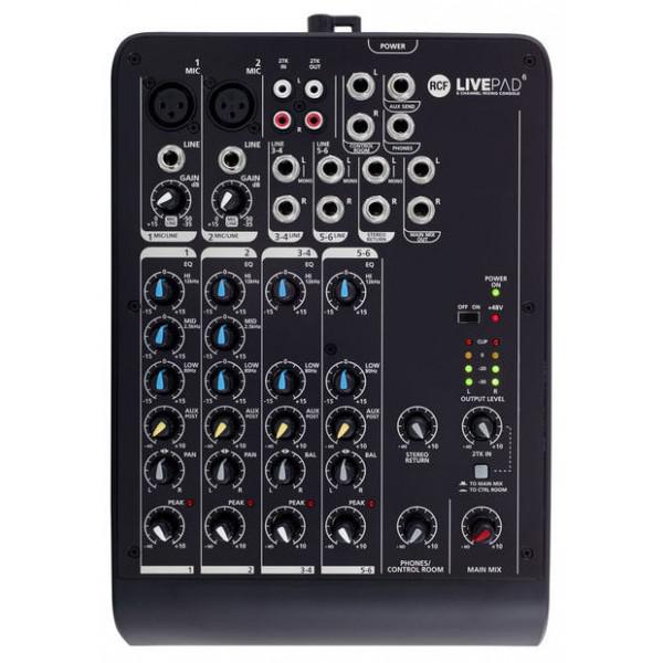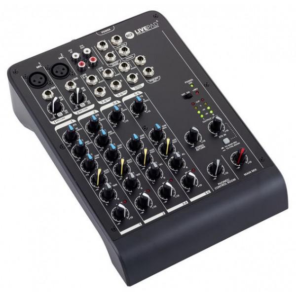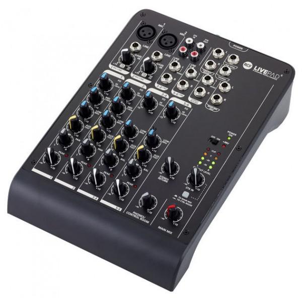 Mixer audio cu 2 intrari de microfon care dispune de preamplificatoare puternice, 2 intrari stereo de linie si 2 intrari / iesiri pe RCA, Livepad 6 este unealta ideala pentru studiouri mici, live-uri restranse si in general pentru aplicatii mici unde se doreste calitate buna a sunetului. La comanda
