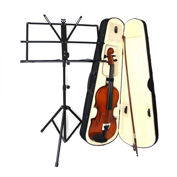 SET Vioara Student 4/4. Setul contine vioara 4/4, cutie de transport, arcus si stativ de partituri.
