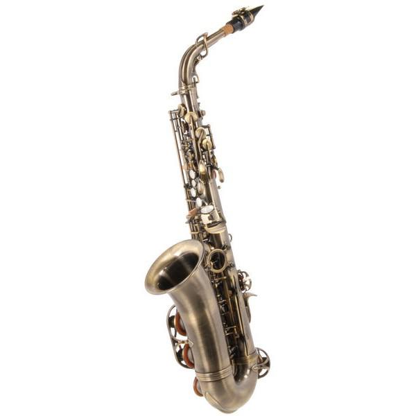 Thomann "antique" alto saxophone - special edition, high F# key, adjustable thumb rest, brass body and keys, antique finish. Very fast response and bright sound. Includes case and mouthpiece.